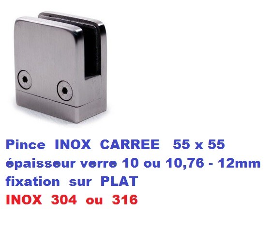 Produit : Pince verre CARREE 55 x 55 fixation SUR PLAT