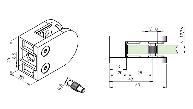 Epaisseur verre (mm) : 8 ou 10 - 10,76 - 12,76 mm