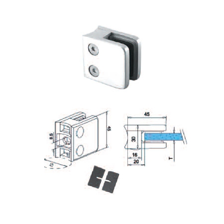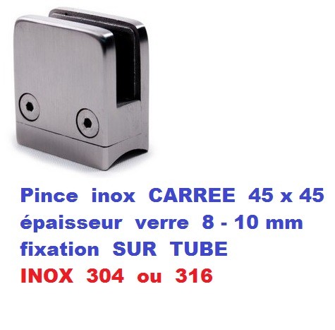 Produit : Pince verre carrée fixation sur tube diam. 42.4